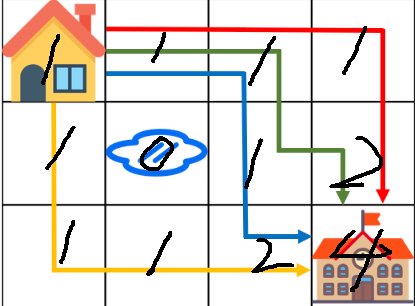 - 각 격자마다 해당 격자까지 도달할 수 있는 경로의 수를 저장